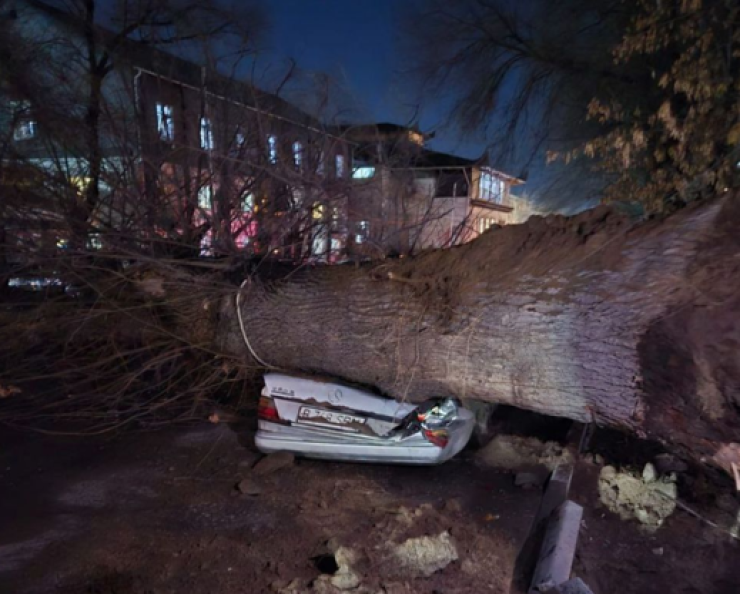 Алматыда ағаш құлап,жеңіл көлікті басып қалды,- деп хабарлайды Tengrinews.kz тілшісі.