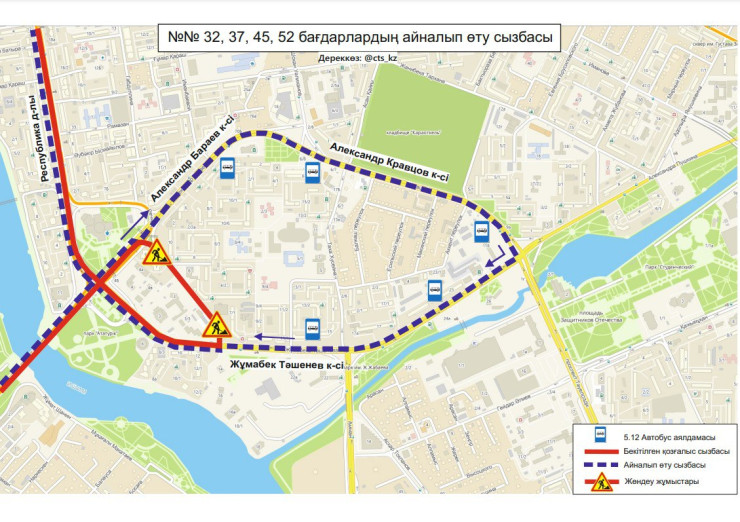 № 32,45,52 бағдарларының қозғалыс сызбасы уақытша өзгерді.