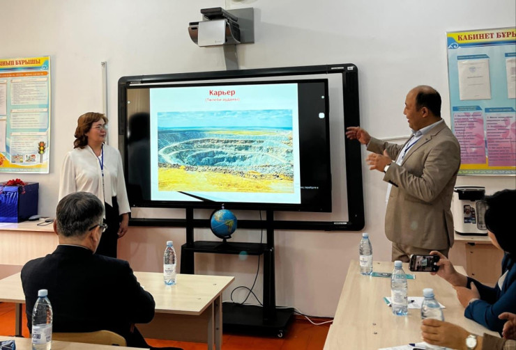 Бесінші шеберлік сыныпта "Ақпараттық технологиялар дәуірінде оқушылардың мобильді цифрлық сауаттылығын дамыта отырып,патриоттық тәрбие құндылықтарын қалыптастыру" атты шеберлік сабақты директордың тәрбие ісі жөніндегі орынбасары Баедилова Жанар Анарбайқызы мен педагог-шебер география пәнінің мұғалімі Айтинбетов Қайрат Сапаралыұлы презентация жасайтын жасанды интелект Canva,Gamma.app – жасанды интеллект көмегімен презентациялар,құжаттар және веб-парақшалар жасауға арналған заманауи платформа,Google Earth – ғаламшарды 3D форматта зерттеуге арналған қуатты құрал,Zoom Earth – спутниктік суреттер арқылы Жерді онлайн зерттеуге мүмкіндік беретін платформа,Mozaik Education мұғалімдер мен оқушыларға арналған заманауи цифрлық платформа,D-ID – AI көмегімен суреттерді сөйлетіп,бейнеаватарлар жасауға мүмкіндік беретін инновациялық платформа,Ребустар арқылы Қазақстан қалаларын үйрену және әлемнің керемет табиғаты мен Қазақстанның көрікті жерлерін салыстыру әдістері,кері байланыс үшін Microsoft Forms платформасын пайдаланды. Сөз соңында Қаныш Сәтбаевтың «Туған жердің қара тасын мақтан ете білмеген азамат бөгде жердің алтын тасын да мақтап жарытпас» қанатты сөзімен қорытындылады.