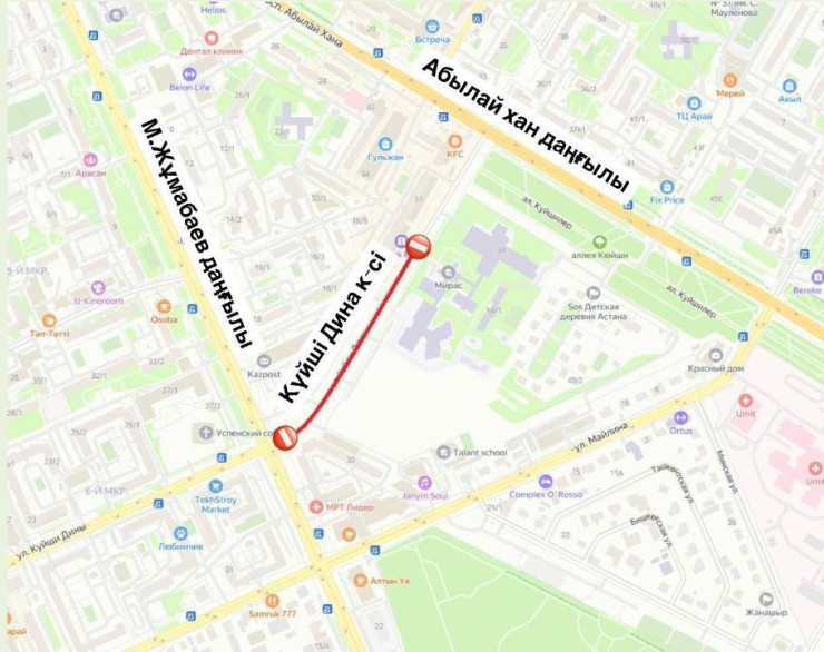 Осыған байланысты,2025 жылғы 9 сәуір мен 30 тамыз аралығында Күйші Дина көшесіндегі "Мирас" мектебінен М. Жұмабаев даңғылына дейінгі қозғалыс толығымен жабылады.