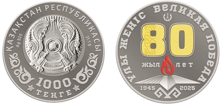 "Монеталарда ерлікпен қаза тапқан қаһармандарды еске түсіретін мәңгілік алау көрініс тапқан. 80 санындағы ою-өрнек жеңіс лентасын бейнелейді және ол Қазақстан Республикасының Мемлекеттік Туы элементтерімен үндеседі",- деп жазылған хабарламада.