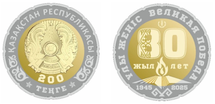 Номиналы 200 және 1000 теңгелік монеталар Ұлы Жеңістің 80 жылдығына орай шығарылғалы отыр.