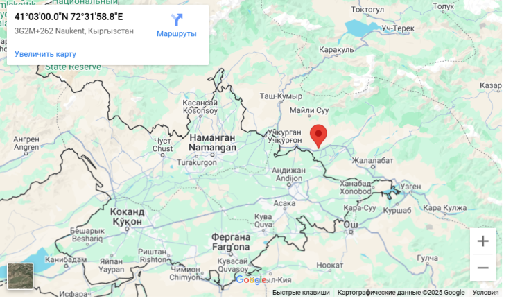"ТЖМ "ҰССБЗҒО" ЖШС-нің сейсмикалық станциялар желісі 24 мамыр күні Астана уақытымен 05:25-те жер сілкінісін тіркеді. Жер сілкінісінің ошағы Қырғызстан аумағында орналасқан. Координаттары: 41.050 с.е.,72.533 ш.б. Есептік қарқындылығы (балмен): сезілмейді",– делінген хабарламада.