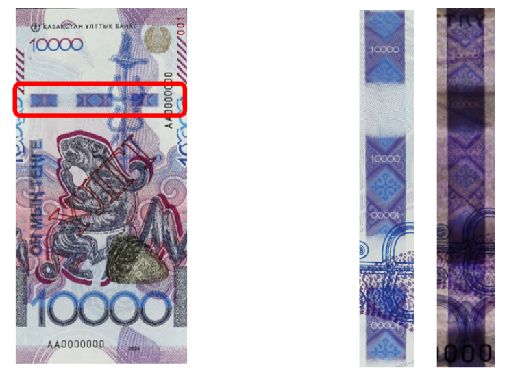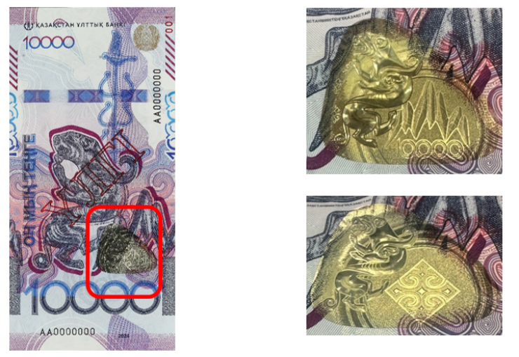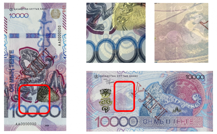 Сондай-ақ,ҚҰБ жаңа дизайндағы 10 000 теңгелік банкнотаның негізгі қорғаныш элементтерін ұсынады. Нұсқаулық азаматтарға шынайы банкнотаны жалған ақшадан өз бетінше ажыратуға көмектеседі.