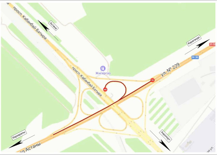 Р-10 "Астананы айналып өту" автожолының учаскесінде (46-дан 53-шақырымға дейін) 2024 жылғы 3 қыркүйек сағат 21:00-ден 4 қыркүйек сағат 09:00-ге дейін Қабанбай батырдың көлік айрығында орташа жөндеу жұмыстарын жүргізуге байланысты қозғалыс шектеледі.