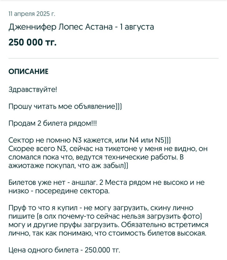 Сондықтан,бейтаныс адамдардан билет алу — концертке мүлде кіре алмай қалу қаупін тудырады.