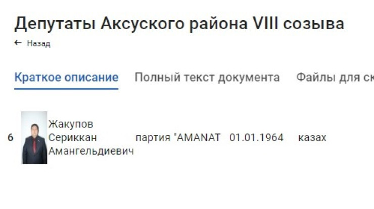 Әлеуметтік желідегі ақпаратқа сәйкес,ер адам бұрын Amanat партиясының аудандық филиалын басқарған,аудандық мәслихаттың депутаты болған. Осы тұста БАҚ депутат Серікқан Жақыповтың есімін атады. Облыстық партия филиалының баспасөз қызметінің мәліметінше,аталған адам биыл 1 тамызда өз өтініші бойынша партия қатарынан кетті.