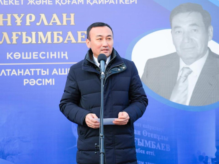 Көшенің ашылуында алғашқы болып сөз алған Энергетика министрінің орынбасары Әлібек Жамауов Нұрлан Балғымбаевтың Тәуелсіз Қазақстанның дамуына қосқан орасан зор үлесін атап өтті. Мұнай-газ саласының маманы ретінде жергілікті кадрларды даярлау,заманауи технологияларды енгізу арқылы мұнай-газ кен орындарын барлау,игеру,көптеген кәсіпорын ашу сияқты мұнай саласының өрлеуіне бағытталған қыруар жұмыс атқарғанын айтты.