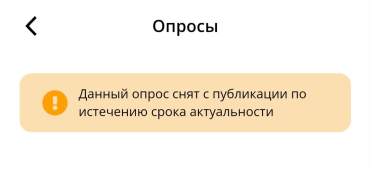 "Бұл сауалнама өзектілік мерзімі аяқталғандықтан жариялаудан алып тасталды",– делінген қосымшаның "Хабарламалар" бөлімінде.
