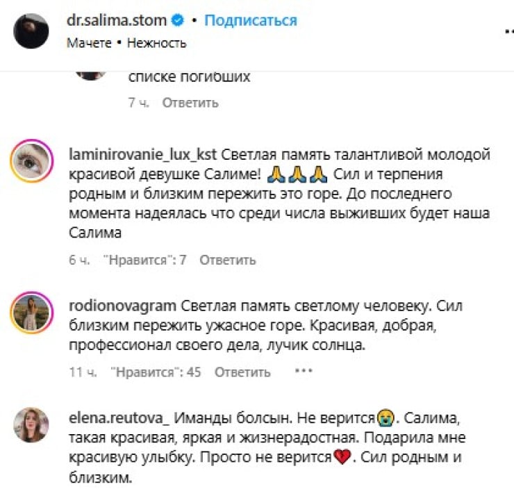 Сәлима 29 жаста болған. Ол Қостанайда стоматолог болып жұмыс істеген. Сәлима Жутаева трагедиядан үш күн бұрын Instagram-парақшасында әзербайжан тілінде "Сен жаңбырдағы күн сияқтысың" деп жазба жариялаған.