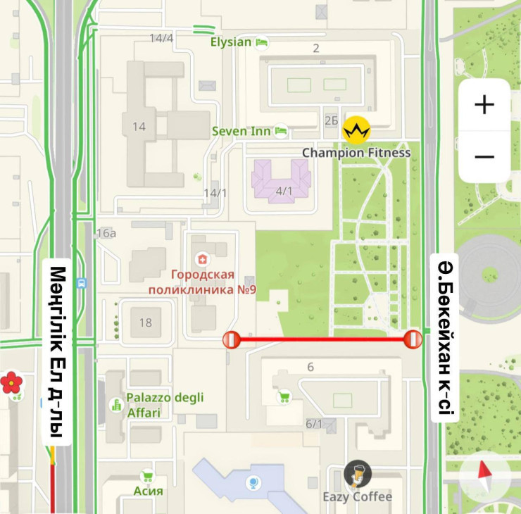 "Емханаға Мәңгілік Ел даңғылы жағынан кіре аласыздар. Жүргізушілер мен жаяу жүргіншілерден бағыттарын алдын ала жоспарлап,жол қозғалысындағы өзгерістерді ескеруді сұраймыз. Қауіпсіздікті қамтамасыз ету және қолайсыздықты азайту үшін уақытша жол белгілері мен нұсқағыштар орнатылады",– делінген Астана әкімдігінің хабарламасында.