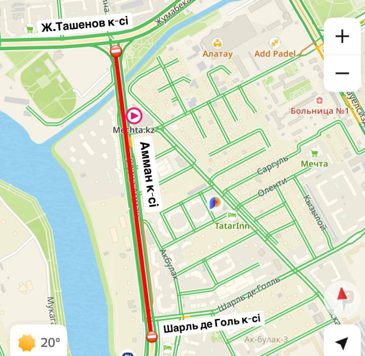 Сондай-ақ,қалада тағы бір көше учаскесі жабылады. Орташа жөндеу жұмыстарына байланысты 29 маусым мен 4 шілде аралығында Амман көшесінің Ж. Тәшенов көшесінен Шарль де Голль көшесіне дейінгі бөлігі жартылай жабылады. Бұл аралықта көлік қозғалысы екі бағытта кезең-кезеңімен бір жақ қапталмен ұйымдастырылады.