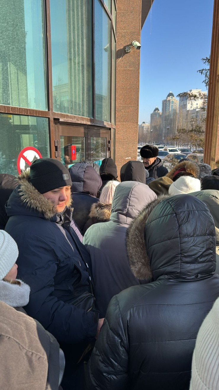 Банк клиенттері алдымен есіктің алдында күткен,кейін қаржы ұйымының ғимаратын толтырған.