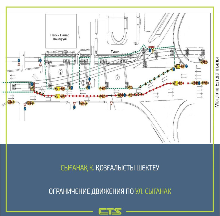 Қала әкімдігі мәліметінше,LRT жұмыстарын жүргізу жоспарына сәйкес Сығанақ көшесі бойынша жол қозғалысы өзгереді.