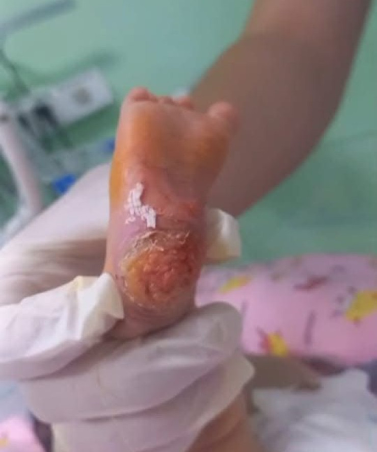 Медициналық қызметкерлер баладан анализ алу кезінде спиртпен табанын күйдіріп алғаны анықталған. Сонымен қатар,туысының айтуынша,дәрігерлер осы уақытқа дейін анасына жөргекті ауыстыруға немесе нәрестені ұстауға рұқсат бермеген.