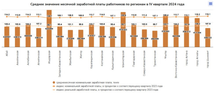 2023 жылғы IV тоқсанмен салыстырғанда жалақы 10,5 пайызға,инфляцияны ескере отырып 1,8 пайызға өсті.