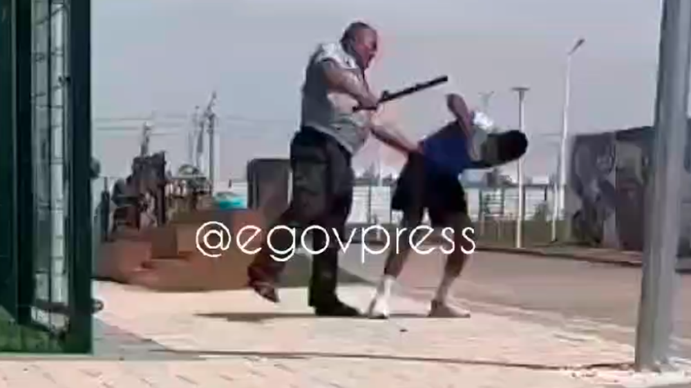 Кадрларда күзетшіге немесе полицейге ұқсайтын ер адам жасөспірімді ұстап алып,ұрысып,ағашпен ұрып,кейін ішінен екі рет ұрып жібергені көрінеді. Осы кезде жасөспірім: "аға,кешіріңіз! Ойбай! Кешіріңіз,өтінемін!" - дейді.